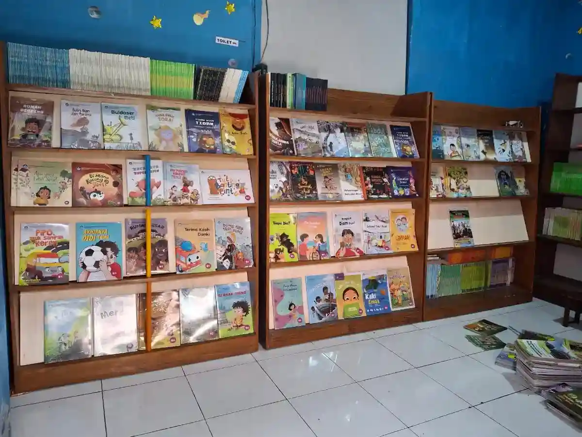 Beragam buku bacaan anak, mulai dari cerita bergambar hingga pengetahuan umum, disiapkan untuk memenuhi kebutuhan literasi siswa.